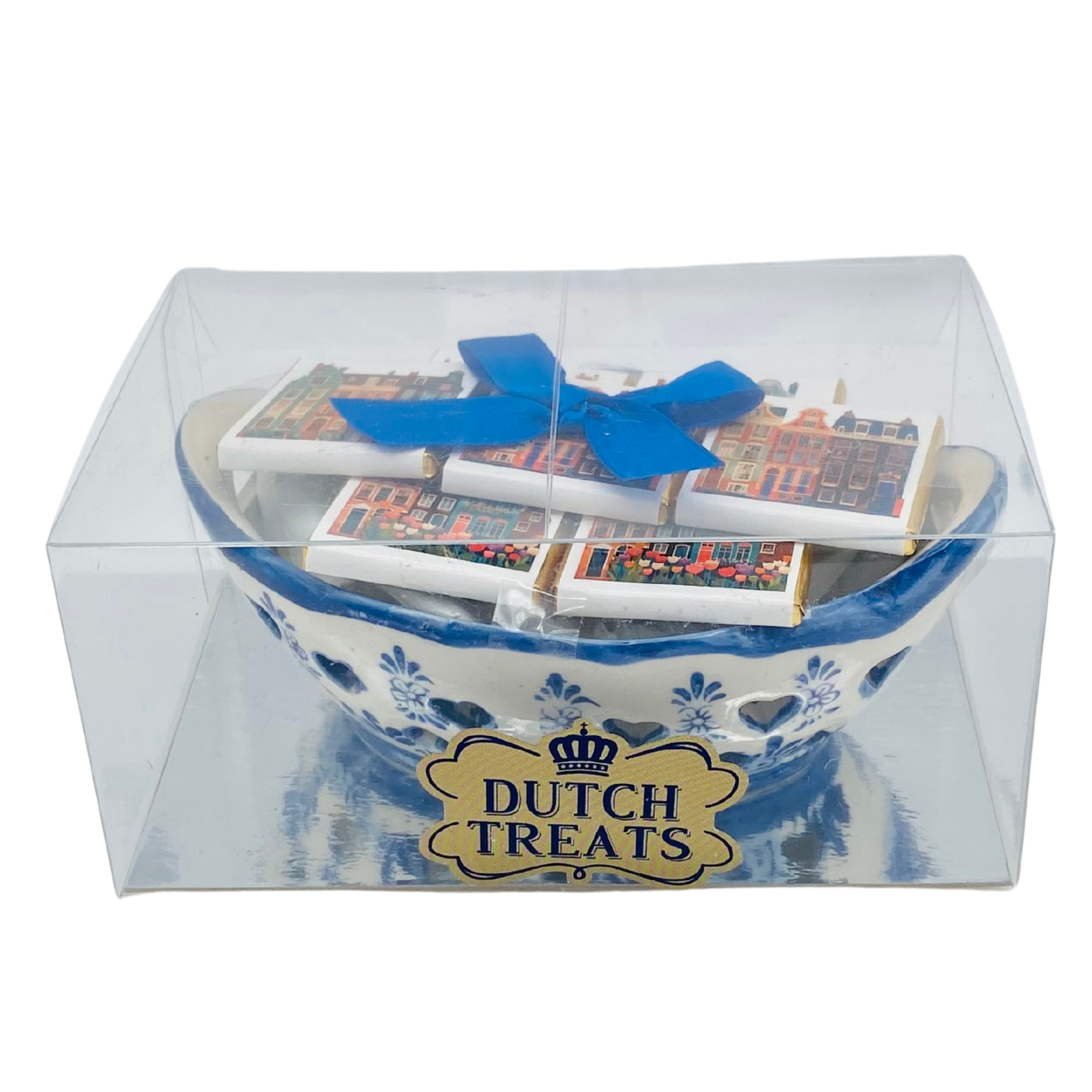 This Delft blue basket comes ready-packed with chocolates, making it an instant “just because” gift.After the treats are gone, the ceramic basket stays as a decorative bowl for snacks, keys or tiny treasures.